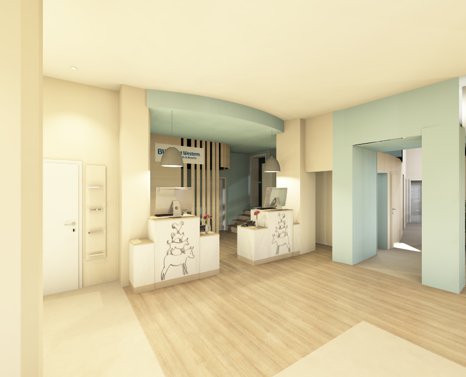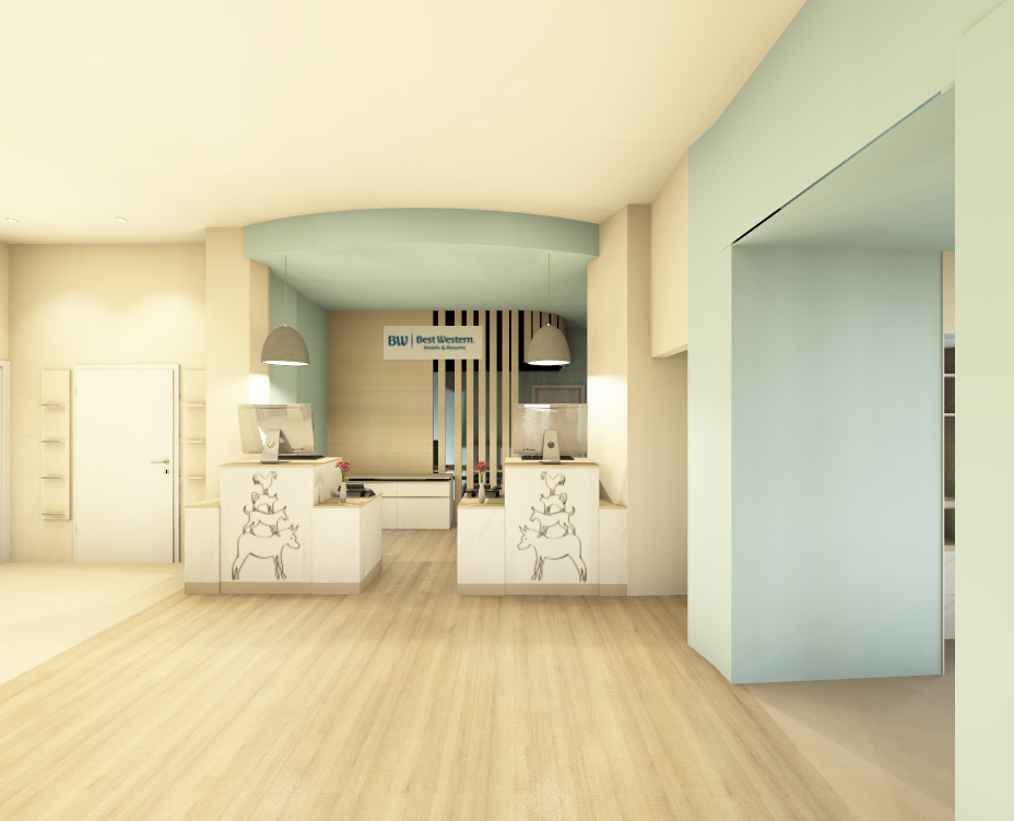 Für das Best Western Hotel sollte eine neue Lobby im skandinavischen Stil entstehen, in der die Mitarbeiter des Hotels gerne arbeiten und sich Gast und Mitarbeiter wohl fühlen.