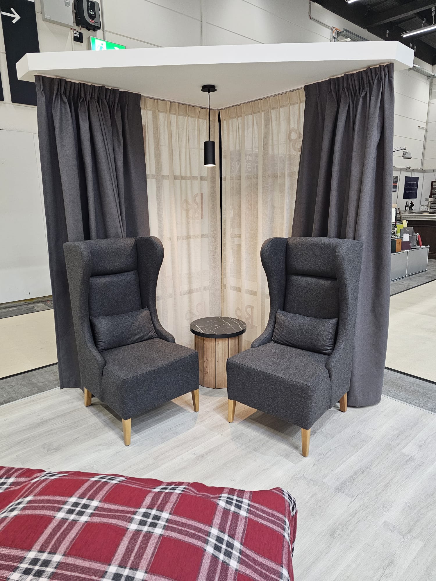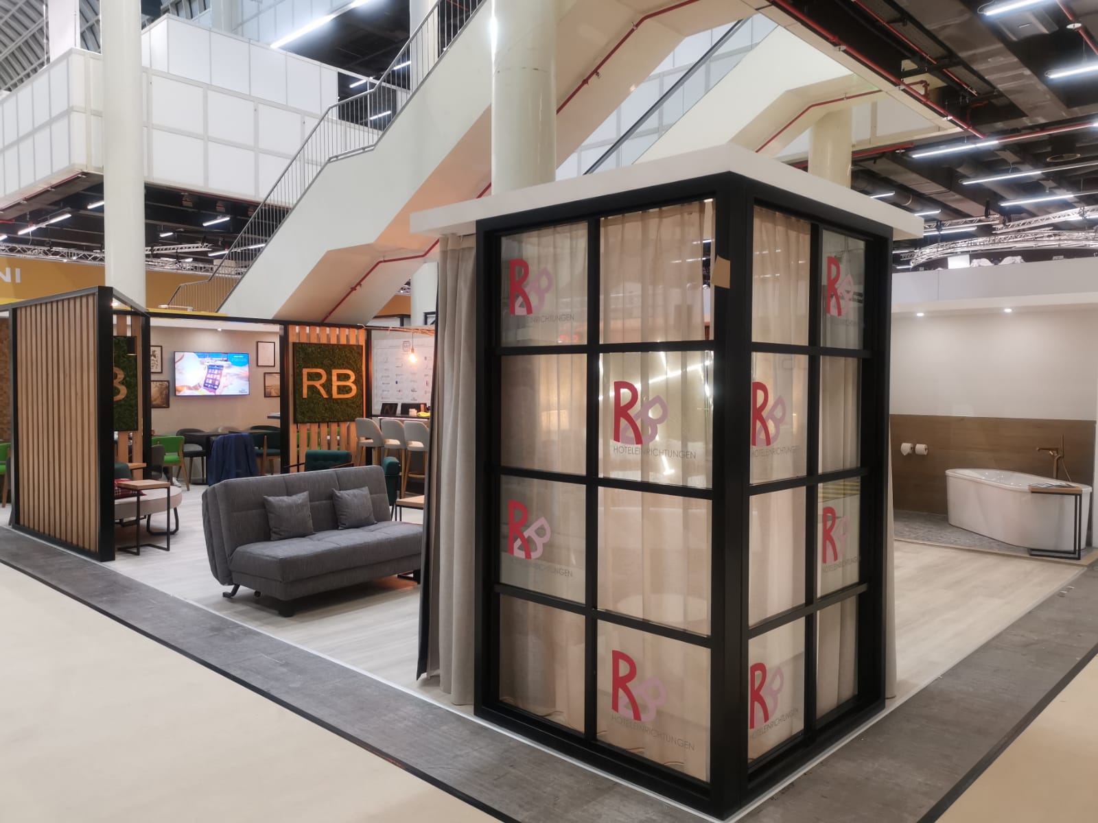 Der Messestand wurde mit dem Ziel realisiert, eine einladende, kommunikative und gleichzeitig funktionale Umgebung zu schaffen – perfekt für die Präsentation der Möbel und ideal für Gespräche.
