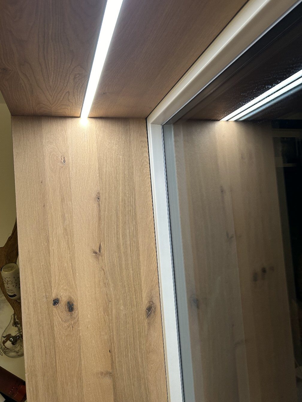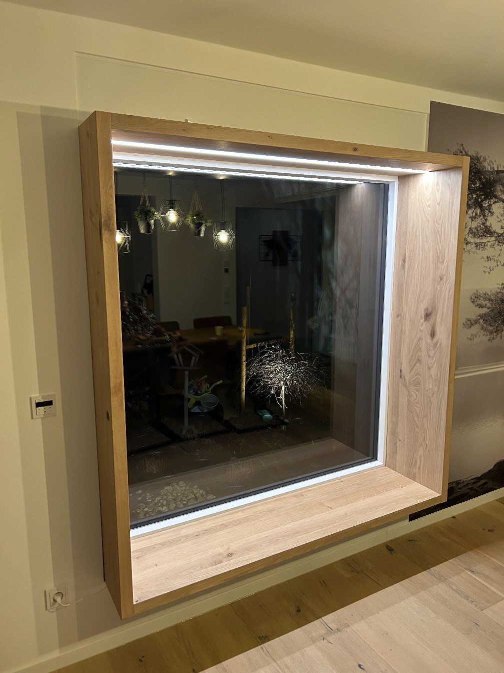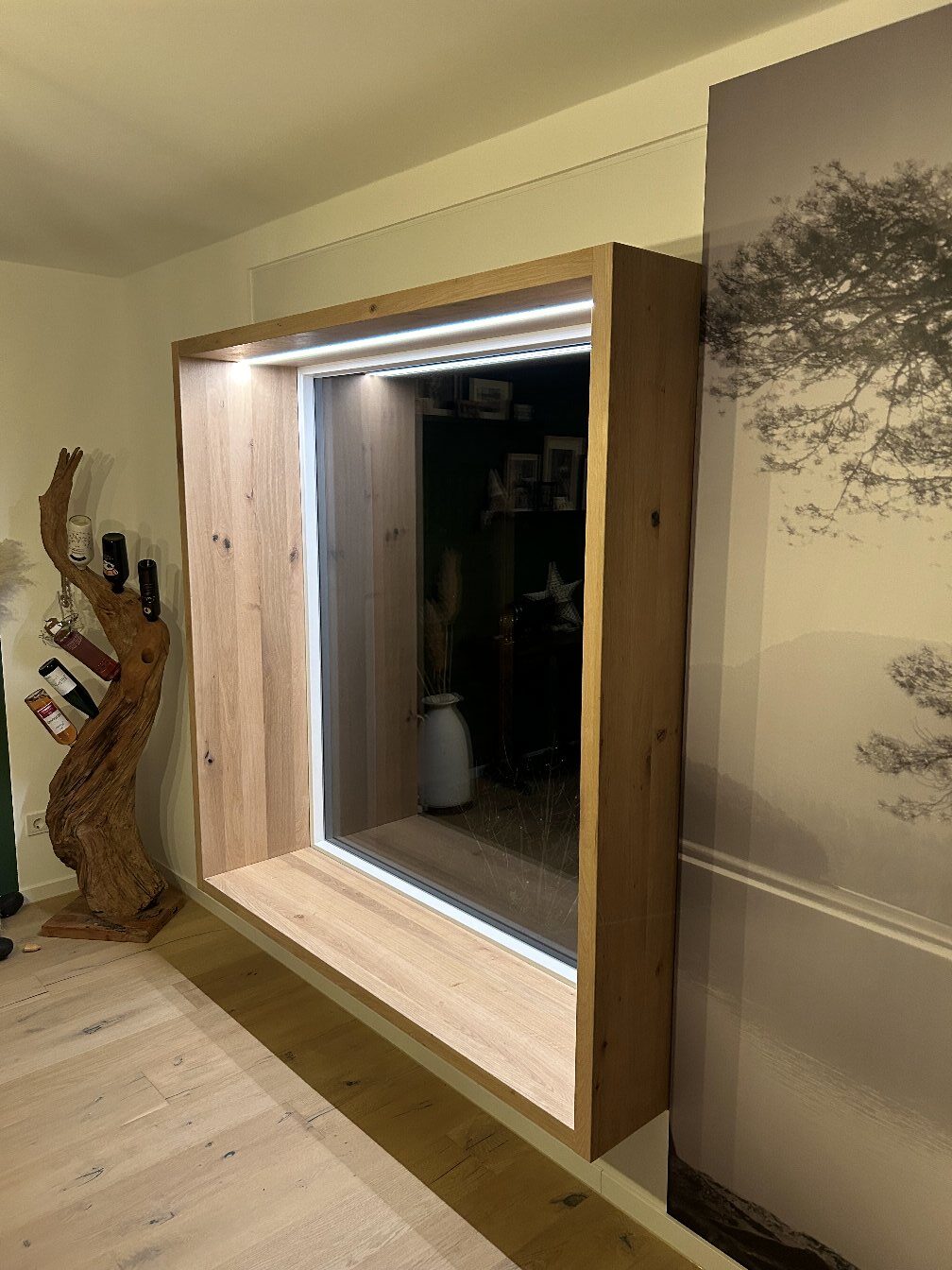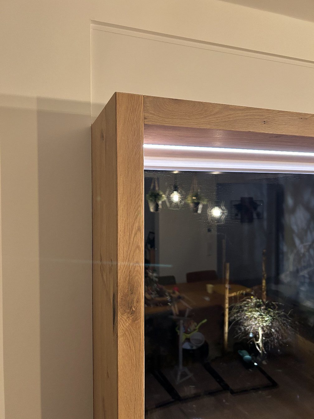 im oberen Holzrahmen integrierte dimmbare Beleuchtung